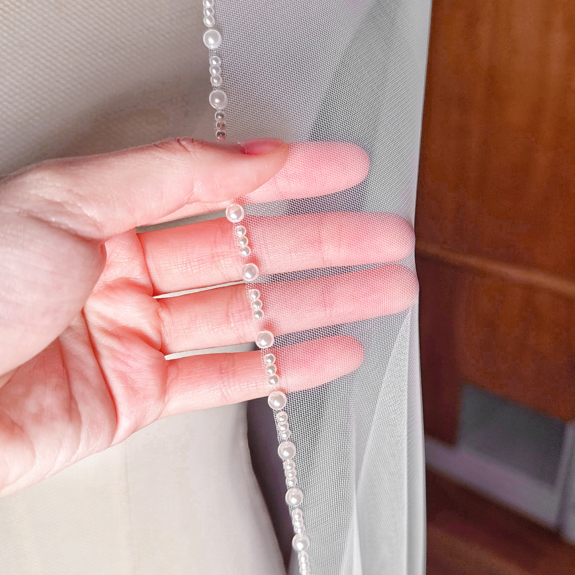 CLOVELLY | Cathedral Veil with Pearl Edge