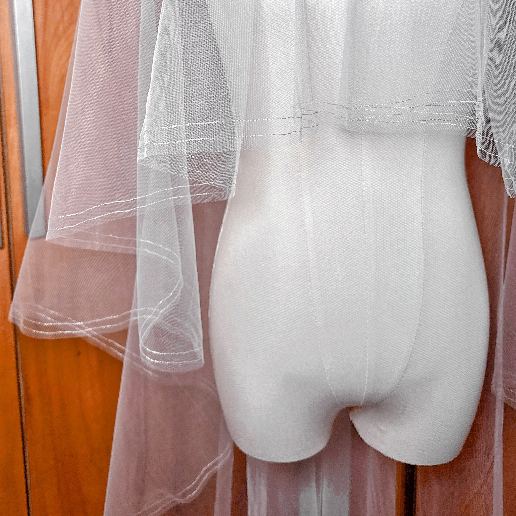 FRANCOISE | Two Tier Veil with Silver Metallic Edge