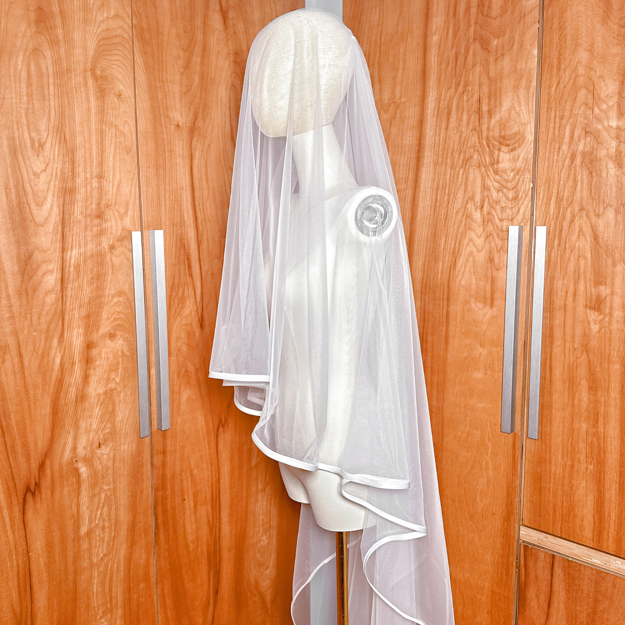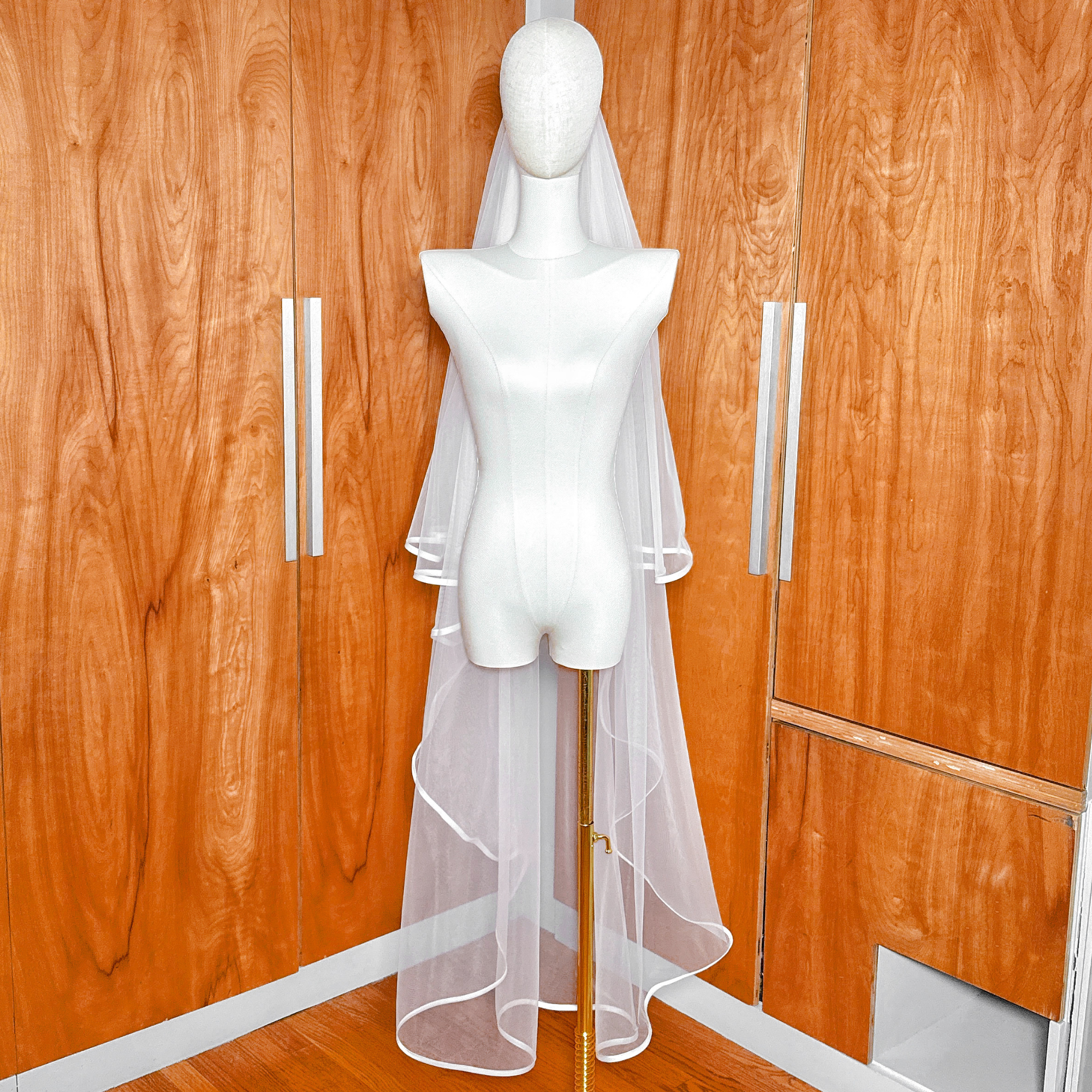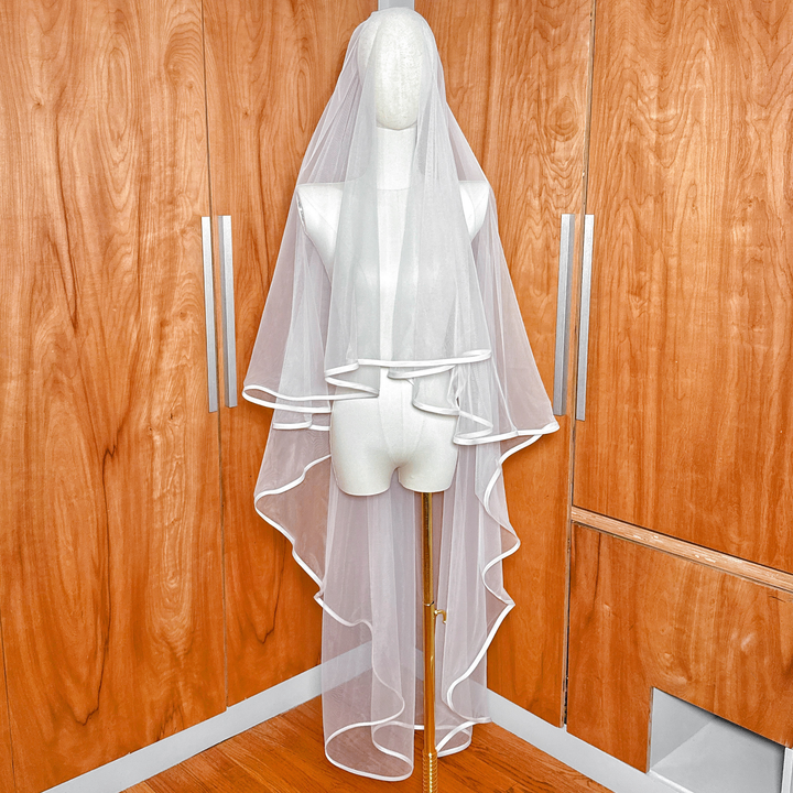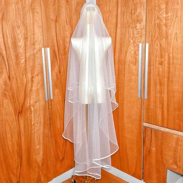 JILL | Two Tier Waltz Length Veil with Ribbon Edge