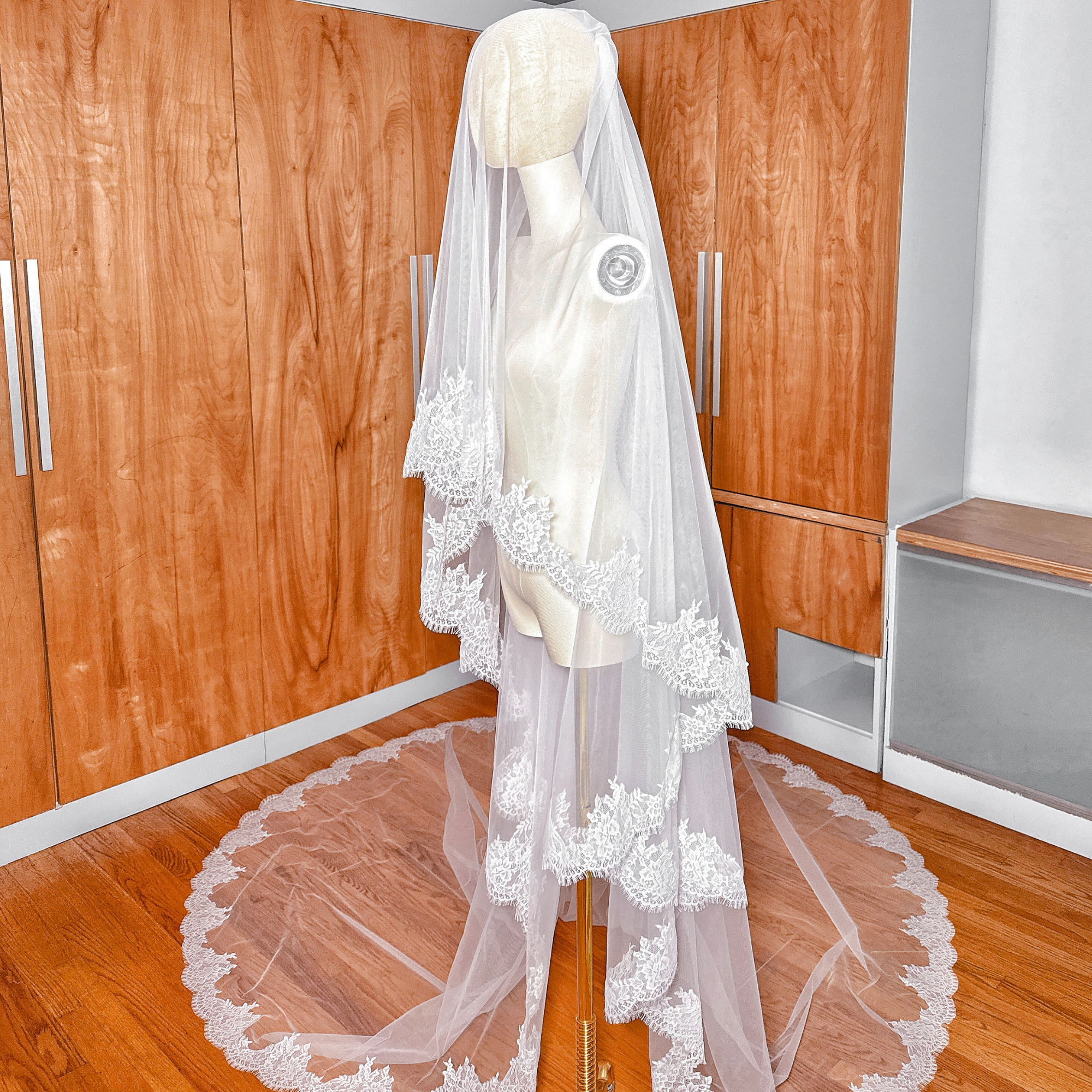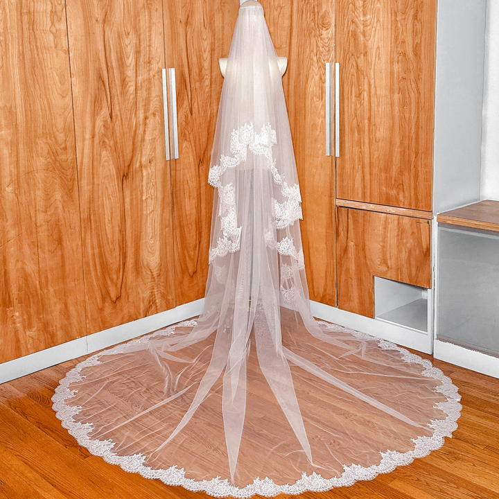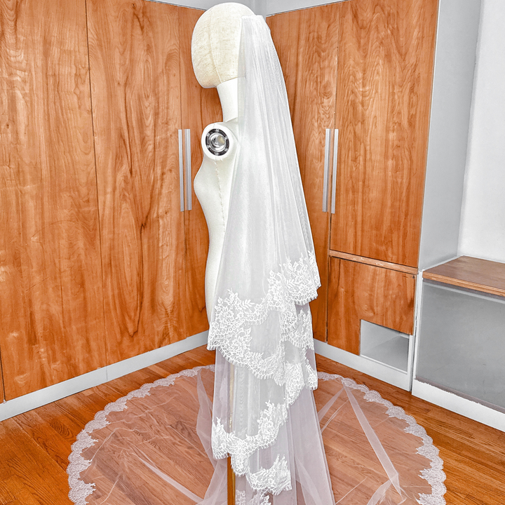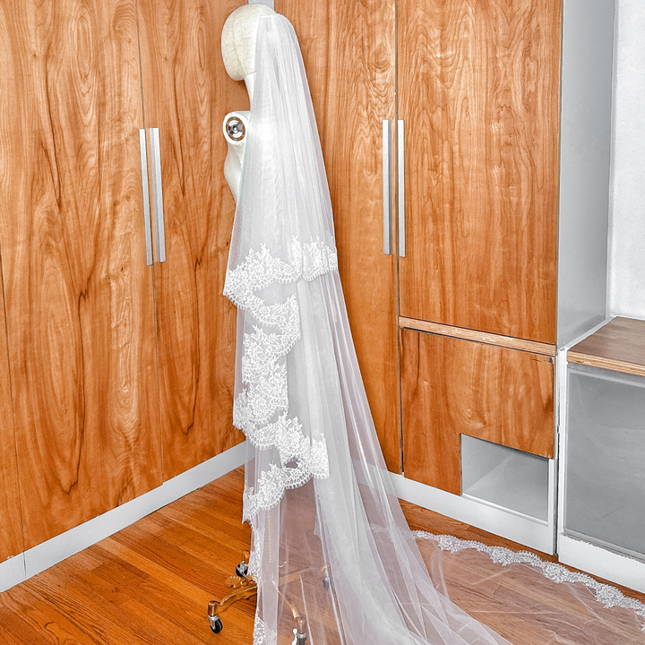 VENICE | Chantilly Lace Cathedral Veil with Blusher