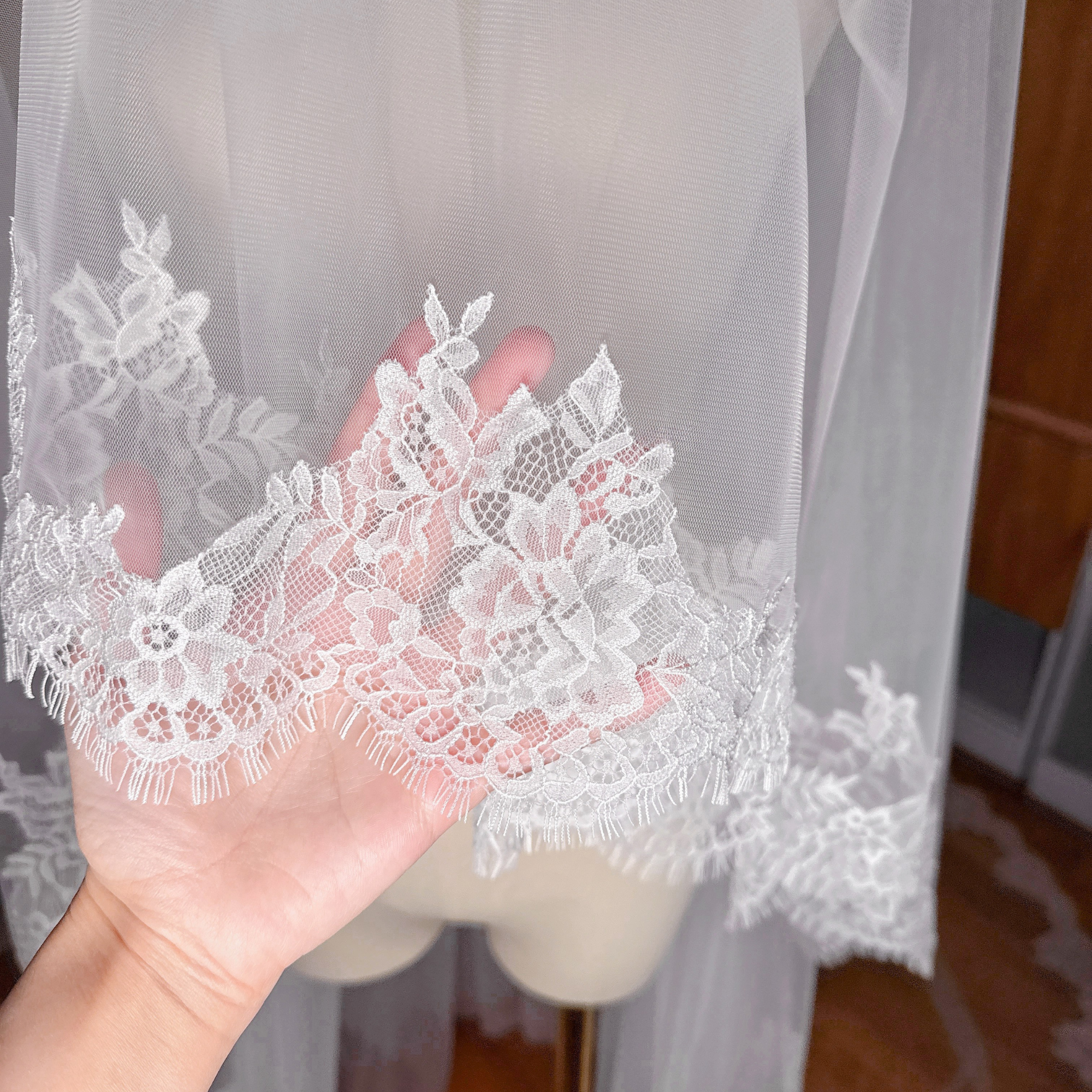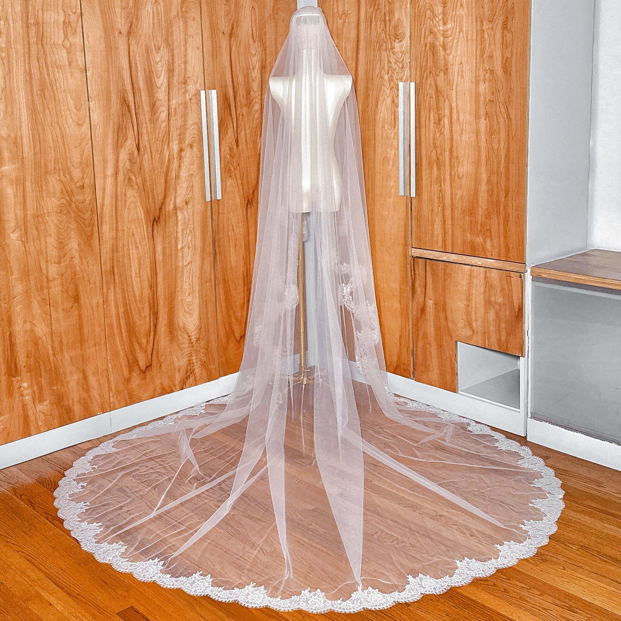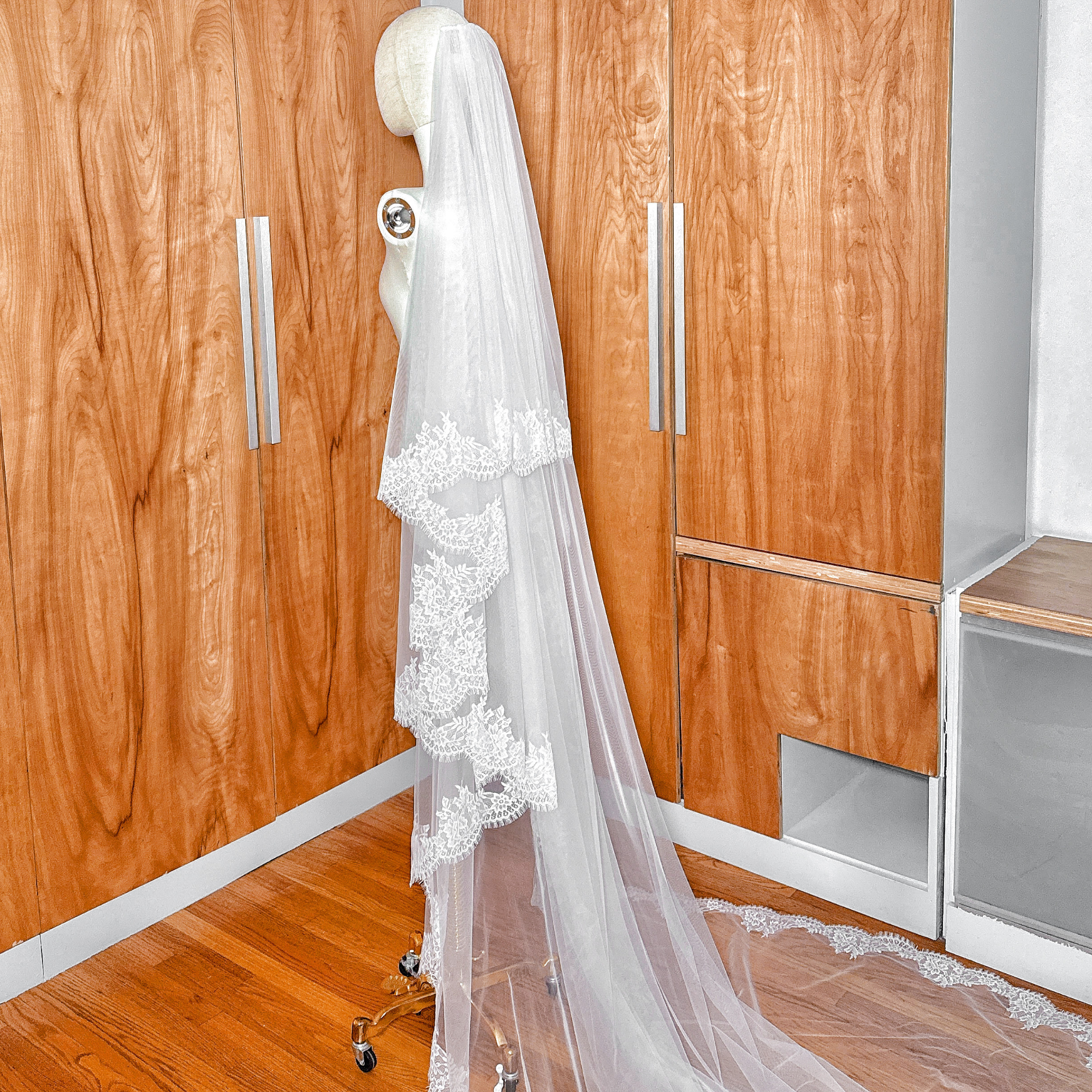 VENICE | Chantilly Lace Cathedral Veil with Blusher